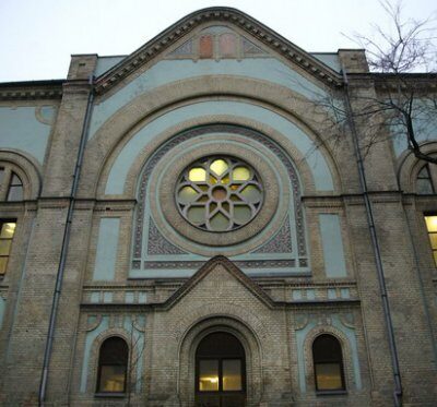 A Dózsa György úti zsinagóga: A huszadik század elején az angyalföldi zsidóság saját zsinagógát akart építtetni és a tervezéssel Baumhorn Lipótot, a neves zsinagóga építészt bízta meg. A tervező a néhány évvel korábban általa tervezett gyönyörű szegedi zsinagóga egyszerűsített formáját álmodta az akkori Aréna útra. |