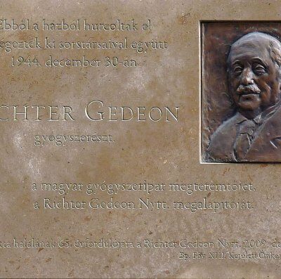 Richter Gedeon 1907-ben felépítette az első magyarországi gyógyszergyárat, 1912-ban szabadalmaztatta a Kalmopyrint és a Hyperol fertőtlenító tablettát. Első organoterápiás készítményét, a vérnyomást növelő mellékvese-hormon kivonatát még ma is használják a gyógyászatban. 1944. december 30-án magyar nyilasok a Dunába lőtték.