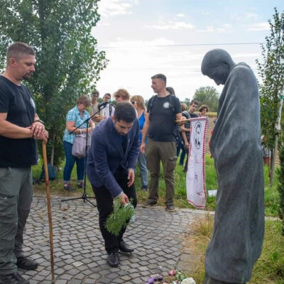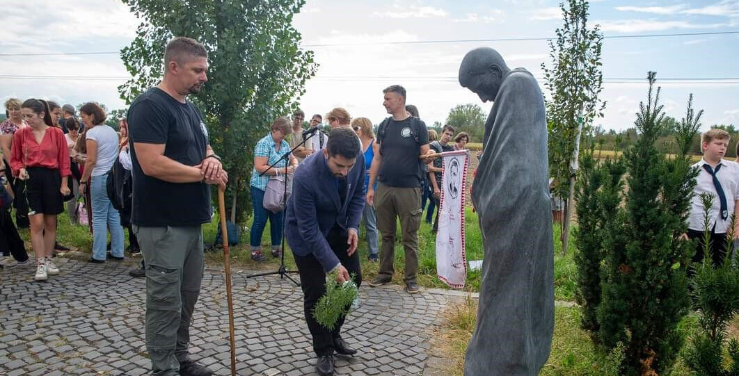 Címlapkép: A győri Melloco-szobornál Tóth Péter Lóránt, a koszorút elhelyezi Rigó Balázs, Tata alpolgármestere. Fotók: SZABÓ BÉLA