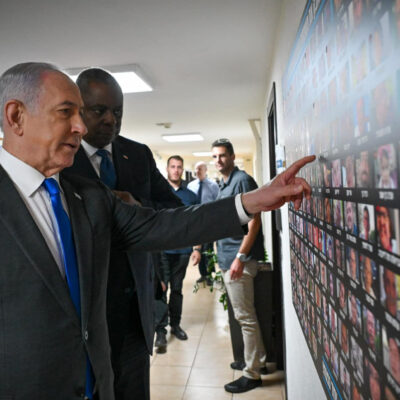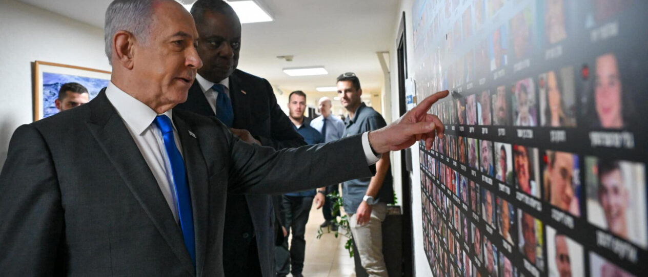 Címlapkép: Az izraeli miniszterelnök a túszok fényképeit tartalmazó tabló előtt. Forrás: Benjamin Netanjahu/Facebook