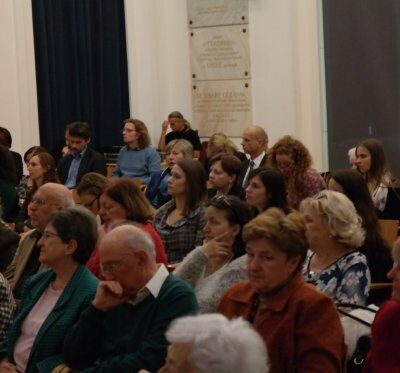 A konferencia résztvevői megtöltötték a termet. Minden generáció képviseltette magát az egyetemistáktól az idősebb nemzedékekig.