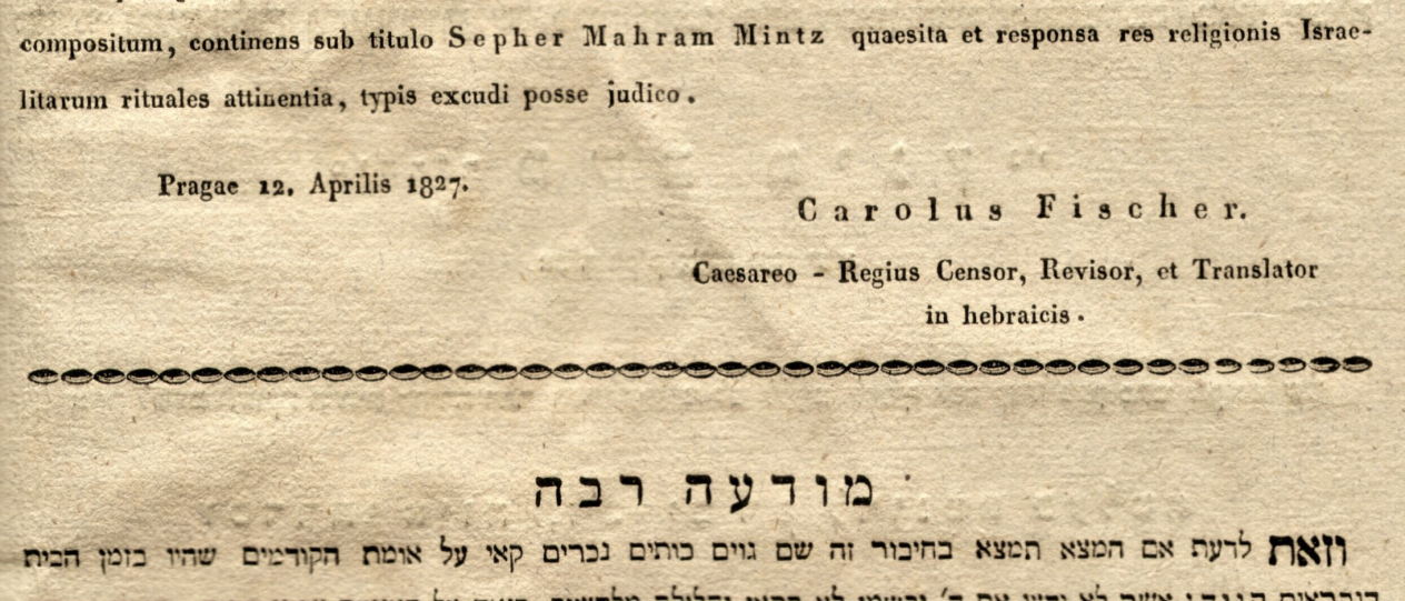 Az Osztrák Császárságban az állami cenzúrát II. József vezette be, a hivatalnak gyebek mellett a héber betűkkel írt könyvek ellenőrzése volt a feladata. Az első állami cenzor a nagyműveltségű és tudású Carolus (Karl) Fischer volt Prágában 1791-től1831-ig. A héberül kiválóan tudó keresztény cenzor működése alatt komoly tudományos művek láttak napvilágot – írja a Magyar Zsidó Múzeum és Levéltár péntekenként e-postázott magazinja.