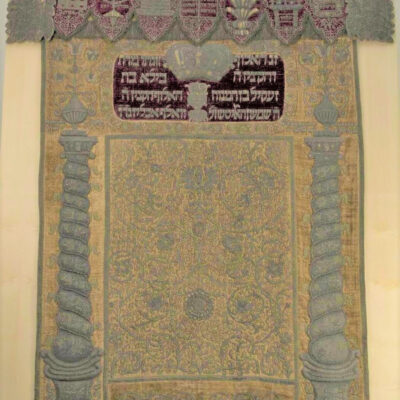 A tóraszekrény függönyt és drapériát Holitsch Zekil és neje, Bella készíttették az 5502-es zsinagógai évben, azaz 1742-ben. Holitsch Zekil a neve alapján morva területről érkezett, nevében megőrizve eredeti lakhelye, a szlovákiai Holič nevét – a Magyar Zsidó Múzeum és Levéltár gyűjtéséből és mai hírleveléből.