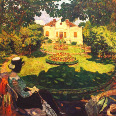 Perlmutter Izsák (1866-1932) feleségével és fogadott lányával 1908-ban telepedett le Rákospalotán. Az itt készült művei közül, amelyek családját és otthonát, annak kertjét ábrázolják, többet is őriz a Magyar Zsidó Múzeum és Levéltár. Így például egy 1910-ben festett remekművét, amelynek címe: Parkban / A festő rákospalotai otthona. A Zsidó Múzeum pénteki hírlevelében ez a kép a hét műtárgya.