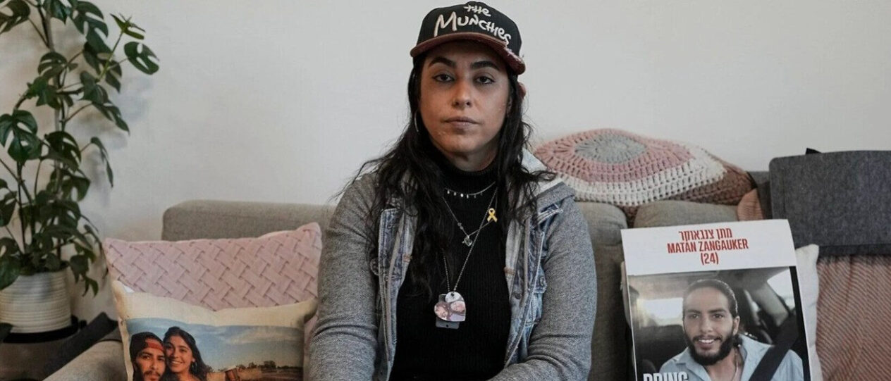 Párja, Matan Zangauker egyike annak a 24 fogolynak, akikről még mindig úgy gondolják, hogy életben vannak. Mindannyian fiatal férfiak, akiket 2023. október 7-én raboltak el. Azon a napon, amikor több ezer Hamász terrorista betört Dél-Izraelbe, hogy megöljenek mintegy 1200 embert, és 251 foglyot ejtsenek, elindítva ezzel a gázai háborút.