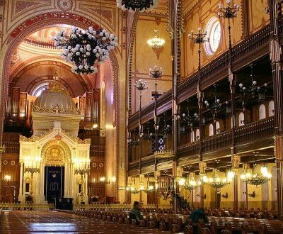 A séta a világ második legnagyobb zsinagógája mellől indul (igen, a Dohány utcairól van szó), de csak mellőle – a neológ közösség zsinagógájának meglátogatása ezúttal külön program, mi most Pest másik két zsinagógájára vetjük vigyázó szemünket. Először a Rumbach Sebestyén utcaira – elhagyatott, borzasztó állapotú épület ez, a holokauszt egyik áldozata: hiszen a zsinagógát fenntartó, a neológok és az ortodoxok között középúton elhelyezkedő, csak Magyarországon létezett Statusquo Ante-irányzatot képviselő közösség megszűnt létezni a háború után, így az egykor gyönyörű építménynek azóta sincs tulajdonosa. Már kipát sem kell viselni, ha belép az ember fia, hiszen már nem található benne Tóra-tekercs, így „hivatalosan” zsinagógának sem nevezhető. Hogy hajdan gazdag volt (mert itt volt a legtöbb és legdíszesebb Tóra-tekercs), azt már csak a vezető Szolga Zsófia és Szőnyi Eszter elmondásából tudjuk meg – viszont, hogy fantasztikus az akusztikája, azt Bárdos Hanna maga szemlélteti. A Zachor Alapítvány munkatársa egymaga beénekli a hatalmas teret, és a Szól a kakas már úgy hangzik, mintha nem csak ő, de egy kisebb kórus énekelné.