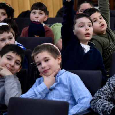 A februári kabalat sabat különleges hangulatban telt a BZSH Scheiber Sándor Általános Iskola legfiatalabb diákjai számára: az 1–4. évfolyamos tanulók szüleikkel és tanítóikkal együtt a Rumbach utcai zsinagóga körzetében köszöntötték a szombatot. A gyermekekkel Dickmann Dávid foglalkozott, aki játékos, élményszerű programmal vezette be őket a közös ünneplésbe.