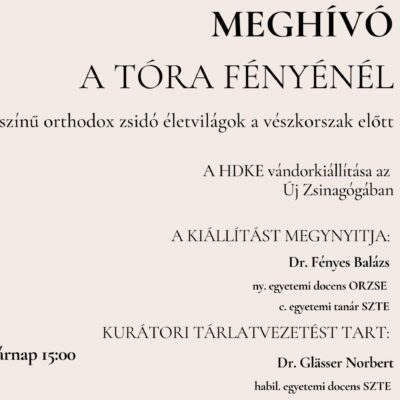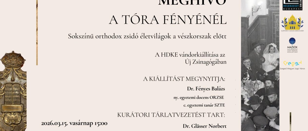 „A Tóra fényénél – Sokszínű orthodox zsidó életvilágok a vészkorszak előtt” című kiállítás a magyarországi orthodox zsidóság gazdag vallási, közösségi és kulturális világát mutatja be a második világháborút megelőző időszakban. A tárlat arra a hagyományokra épülő életformára irányítja a figyelmet, amelyben a Tóra tanítása, a vallási intézmények és a közösségi élet meghatározó szerepet játszott a mindennapokban.
