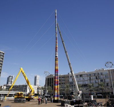 A városháza előtt, a Rabin téren álló építményt, amellyel a város szeretne bekerülni a Guinness-világrekordok közé, szerdán mutatták be a nyilvánosságnak. A Guinness ellenőrei nem voltak jelen a két hétig tartó „építkezésnél”, így a világrekord csak utólag nyerhet hivatalos elismerést.