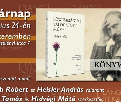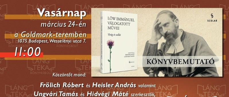 A Scolar Kiadó gondozásában jelenik meg Löw Immánuel világhírű vallástörténész, nyelvész és botanikus életműsorozatának első kötete. Az ünnepélyes bemutató március 24-én lesz a Goldmark teremben