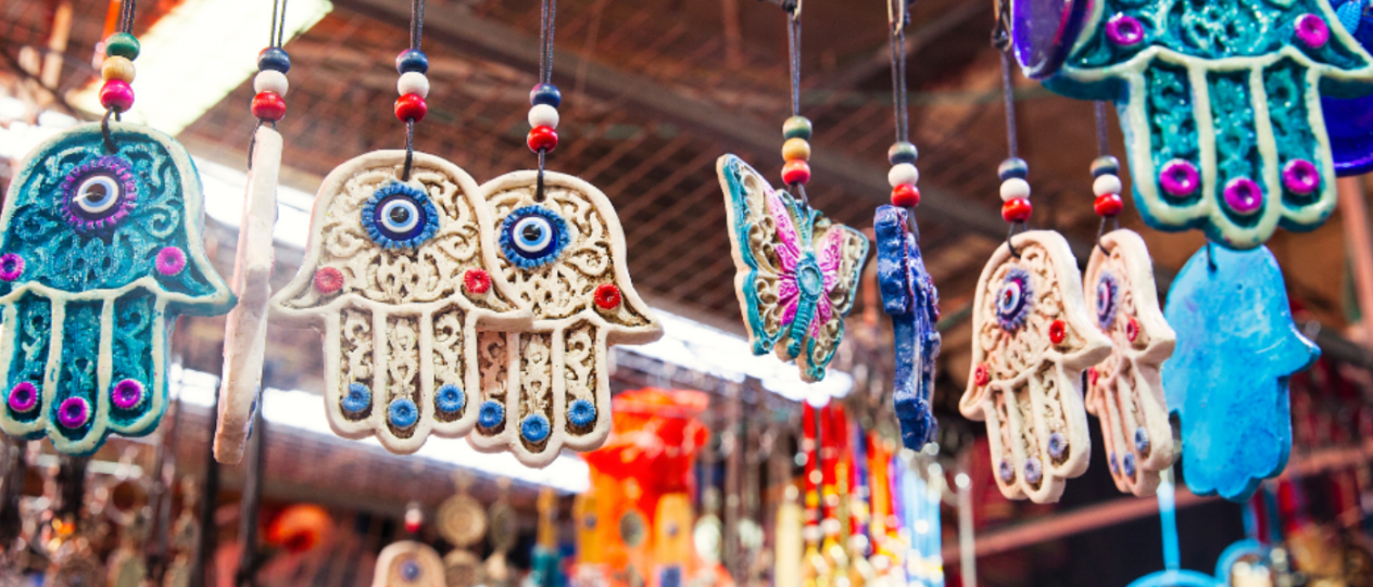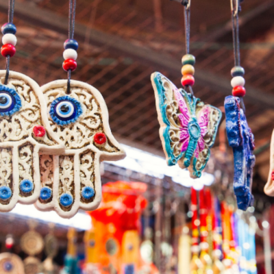 A legismertebb zsidó amulett talán a hamsa, egy tenyér alakú amulett, amelybe egy szem van beágyazva. Ha a tenyér felfelé mutat, megállítja a rosszat, ha pedig lefelé, bevonzza a jót és a szerencsét. Egy másik ismert szokás a csukló köré kötött piros zsinór, amely azután vált népszerűvé, hogy a zsidó miszticizmus, a kabbala számos híres követője viselte. Ezeket és más, kevésbé ismert amuletteket gyakran azért viseltek, hogy elhárítsák a gonosz szemet, héberül ayin harát, egy zsidó népi babonát, amely azt állítja, hogy egy személy vagy természetfeletti lény árthat az embernek, ha ránéz.