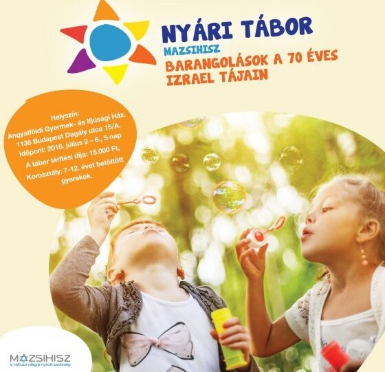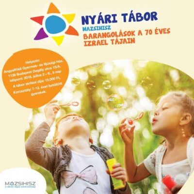 Nyári napközis tábort szervez 7-12 éves gyerekek számára Barangolások a 70 éves Izrael tájain címmel a Magyarországi Zsidó Hitközségek Szövetsége (MAZSIHISZ) a budapesti Angyalföldi Gyermek- és Ifjúsági Házban (Budapest XIII. ker., Dagály u. 15/A.) július 2-6 között.