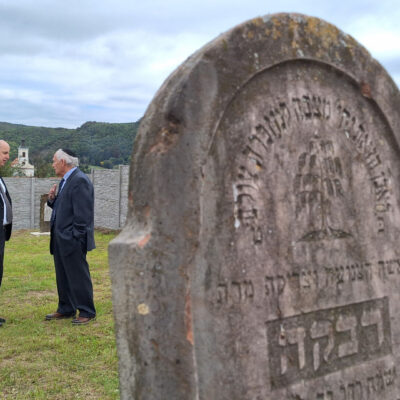Dr. Verő Tamás és Fináli Péter Natonek rabbi sírjánál