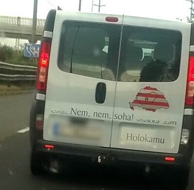 A jelek szerint azonban egyeseket nem zavarja ez a törvény sem, ezt bizonyítja az a fénykép, amit egy olvasónk juttatott el szerkesztőségünkbe. Ezúttal egy, az M5-ösön guruló kisteherautó hátuljáról fröcsög a gyűlöletbeszéd: „holokamu” felirat hirdeti, hogy az autó tulajdonosa szerint márpedig zsidó genocídium nem volt.