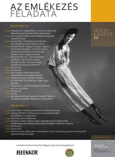 A holokauszt 70. évfordulója alkalmából Az emlékezés feladata címmel tart konferenciát a Jelenkor Folyóirat 2014. december 10-én és 11-én Pécsett a Művészetek és Irodalom Házában.