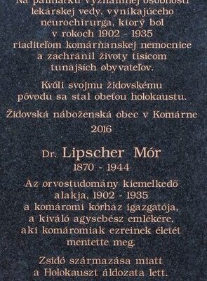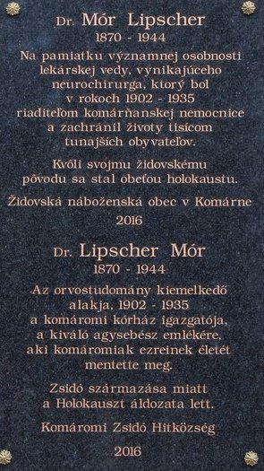 Szeptember 4-én, a hagyományosan megrendezésre kerülő Zsidó Kultúra Európai Napja alkalmából a komáromi kórház sebészetének épületén leplezték le azt az emléktáblát, amely dr. Lipscher Mórnak, a komáromi kórház egykori igazgató-főorvosának állít emléket.
