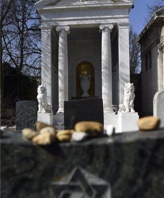 Az ünnepség végén elsőként Deutsch Tamás, majd a zsidószervezetek és az MTK családjának tagjai az emlékezés köveit helyezték el a Brüll kriptánál. (MTI)