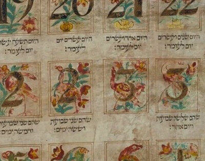 címlap: Ómer naptár. Hollandia, 18. század. (Zsidó Múzeum, New York)