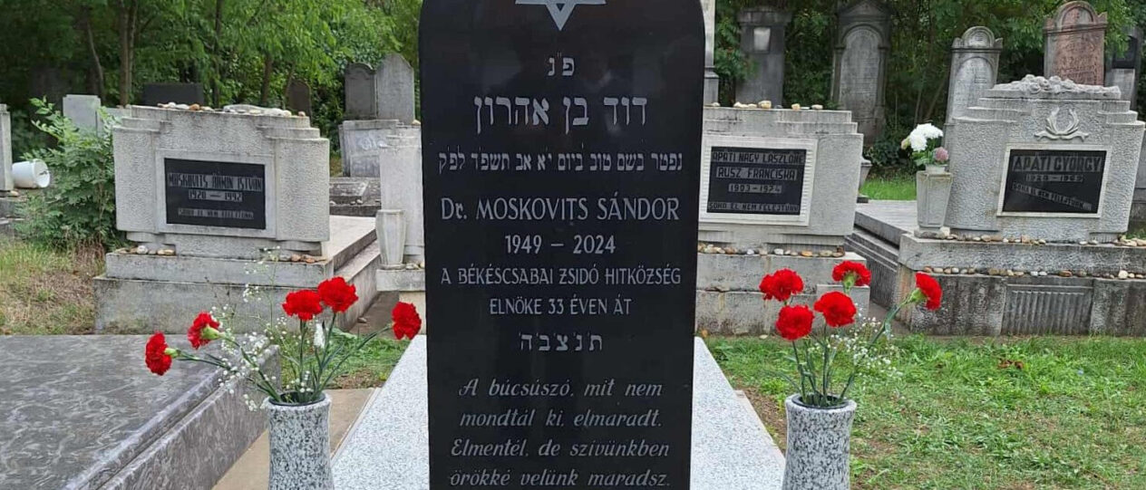 A család, a barátok és a hitközség tagjainak körében avatták fel tegnap a helyi zsidó közösség volt elnökének síremlékét a békéscsabai Csendes utcai temetőben. Dr. Moskovits Sándor – az édesapját követve – 1991-től halálig, 2024-ig vezette a Békéscsabai Zsidó Hitközséget. Emléke legyen áldott!