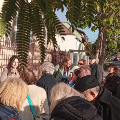 A séta utolsó állomása az egykori izraelita temető újonnan emelt emlékoszlopa volt, ahol a résztvevők tisztelettel adóztak az elhunytak emléke előtt. A sétát Benedek Ágnes vezette, aki a 16. kerületben megbúvó zsidó emlékeket tárta fel a látogatók számára.