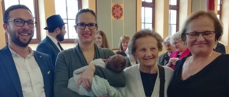 Korábban az újszülött bátyjának, Brunónak volt brisze, aki óvódásként rendszeres részvevője hitközségi programjaink gyermeksarkának. A Hitközség meghívott tagjai mellett Izraelből és Amerikából érkeztek családtagok erre az örömteli eseményre a Pásti utcai Ortodox Zsinagógába. Természetesen „Élijáhu HáNávi – Élijáhu próféta” is megjelent a neki kijelölt székben.