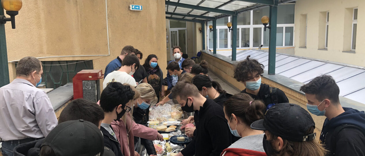 (Címlapkép: a technikum diákjai a Budapest Bike Maffia civil szervezettel együttműködve ennivalót készítenek és csomagolnak hajléktalanok számára. Fotó: BZSH Külker Technikum)