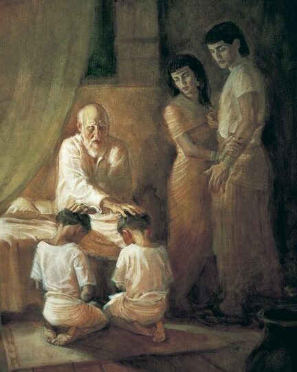 „Midőn közeledtek Izráel napjai a halálhoz, akkor hívatta fiát, Józsefet és mondta neki: Ha ugyan kegyet találtam szemeidben, tedd, kérlek kezedet csípőm alá, hogy cselekszel velem szeretetet és hűséget: ne temess el, kérlek Egyiptomban.” (Mózes I. 47.29. Bernstein Béla fordítása)