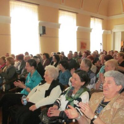 Purimi mulatságunkra meghívást kaptak – mint mindig – határon túli testvérhitközségeink is, és a Zsidó Szabadegyetem hallgatói. Különösen nagy létszámmal üdvözölhettük a Szatmárnémeti Zsidó Hitközség népes táborát, Décsei Miklós elnök vezetésével.