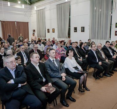 A szünetben a hagyományos fánkkal és borral, üdítővel vendégeltük meg a közönséget.