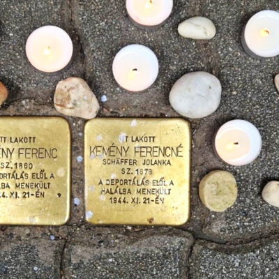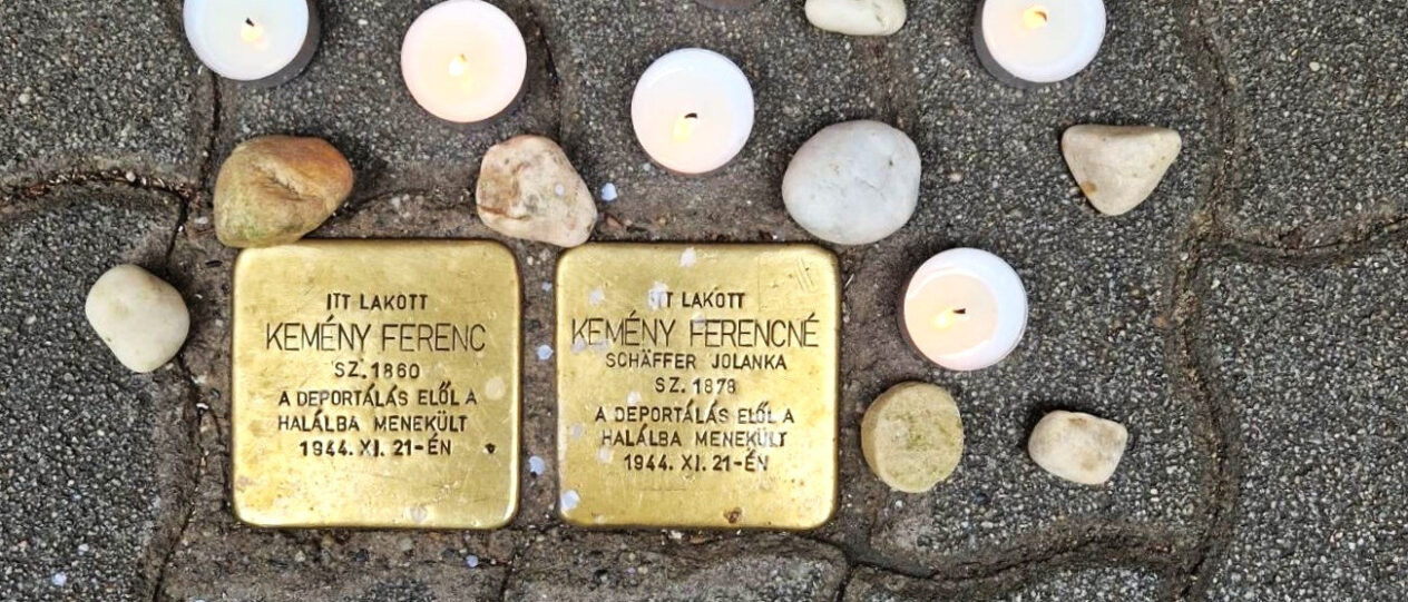 a holokauszt tanulságairól – mondta dr. Grósz Andor Mazsihisz-elnök Kemény Ferenc és felesége botlatóköveinél.
