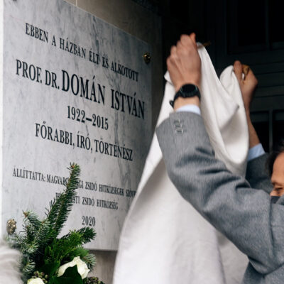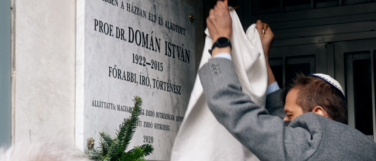 Ezen a héten kedden, november 17-én ünnepelte volna 98. születésnapját dr. Domán István főrabbi (1922-2015), a magyar neológ zsidó közösség kiemelkedő alakja, aki tanárként, íróként és történészként is rangot szerzett magának. Mivel abban a budapesti, Szent István körút 30. szám alatti házban – ahol családjával csaknem harminc évig élt –, a főrabbi emléke ma is tiszteletnek örvend, a születésnapja alkalmából ünnepi rendezvény keretében szerettek volna emléktáblát avatni a tiszteletére. Ám a vírushelyzet ezt sajnos megakadályozta. Így kisebb, családias hangulatú, bensőséges megemlékezés keretében leplezték el Domán István márványtábláját, amelynek elhelyezését a Magyarországi Zsidó Hitközségek Szövetsége (Mazsihisz) és a Budapesti Zsidó Hitközség (BZSH) támogatta.