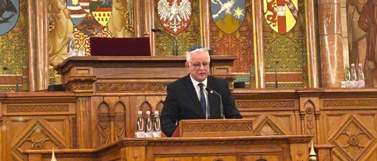 of Mazsihisz, in the Upper House of the Parliament on April 16. Below is the
