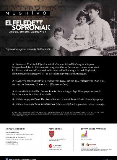 Elfeledett soproniak – arcok, sorsok, áldozatom címmel, a város zsidó közösségének történetét és a holokauszt idején való meghurcoltatását felidéző kiállítás nyílik május 29-én, csütörtökön 17:00 órakor, a soproni Ó- és Új-Zsinagógában.