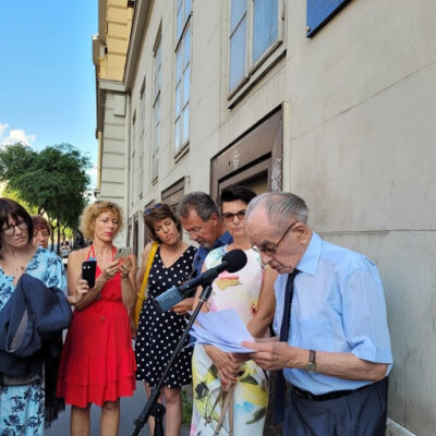 Dr. Körmendi István 99 éves háziorvos hajlott hátú aggastyánként ma ugyanazon kapu előtt állva méltatta Csipkés Ernő érdemeit, ahová 1944 novemberében 21 éves fiatalemberként annak idején belépett, hogy segítséget kérjen Budapest akkori városparancsnokától.