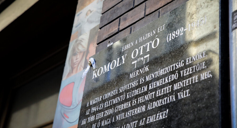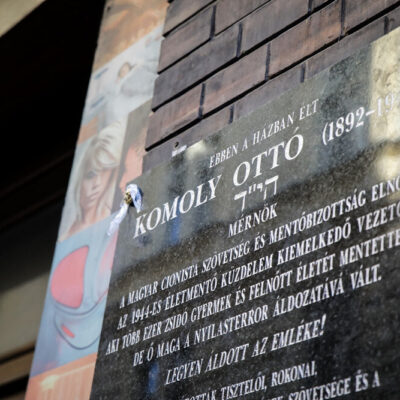 – Komoly Ottó a német megszállás után a magyar politikai és egyházi vezetőktől, a diplomáciai testület tagjaitól próbált támogatást szerezni, közben segítette a cionista ifjúsági mozgalmak illegális embermentő tevékenységét – mondta a Mazsihisz elnöke. – Megbízást kapott a Nemzetközi Vöröskereszttől, s ennek keretében szüleiktől elszakított 6000 zsidó gyermeket vett védelmébe. Az iroda működtetett biztonságos házakat is, ahol külföldi képviseletek védelme alatt ideiglenes menedékre lelhettek az üldözött zsidók. 1945. január 1-én a nyilasok kihallgatásra hívták, s nyoma veszett. Vélhetően sok zsidó társával együtt őt is a Dunába lőtték.