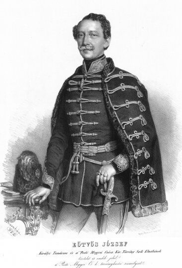 1848-ban Eötvös az első felelős magyar kormány tagja, Batthyány Lajos vallás és közoktatási minisztere lett, még ha itt sokat nem is végezhetett: szeptember végével vissza is vonul, nem sokra rá már a kormány sem lesz hivatalban. A szabadságharc leverése után írja meg nagy politikabölcseleti művét: A 19. század uralkodó eszméinek hatása az álladalomra.