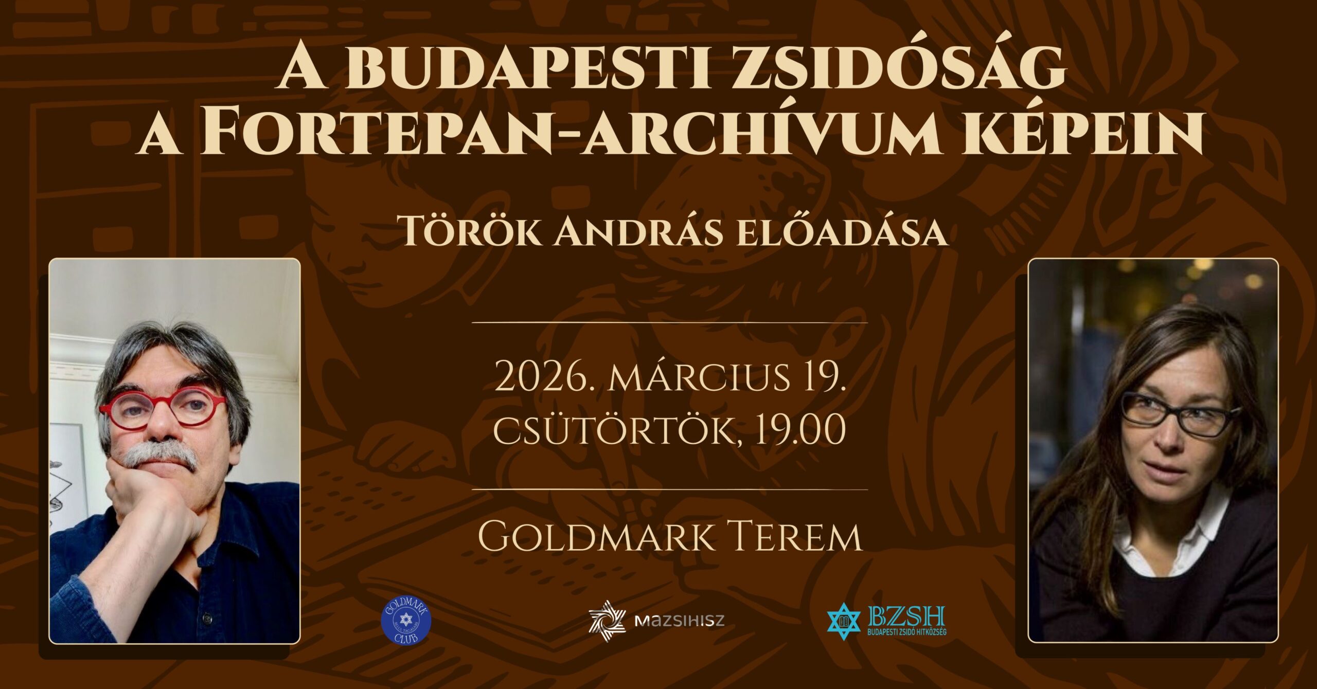 Török András művelődéstörténész tart előadást, amelynek vendége Toronyi Zsuzsanna történész-levéltáros. Az est 1944. március 19-éhez, Magyarország német megszállásának napjához kapcsolódva, archív fényképeken keresztül idézi fel a budapesti zsidóság múltját és mindennapjait 2026. március 19-én, csütörtökön este 7 órakor a Goldmark-teremben. A belépő ára 2900 forint, az ülőhelyek elfoglalása érkezési sorrendben történik.