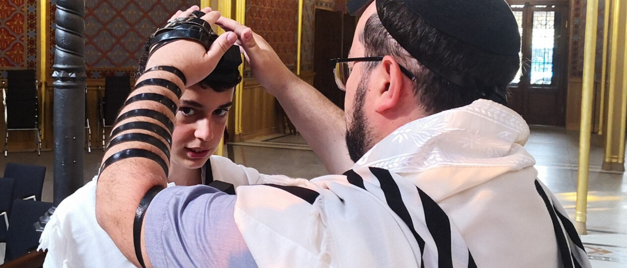 Évtizedek óta először ma volt az első tfilin légolás (imaszíj felrakás) a budapesti Rumbach Sebestyén utcai zsinagógában: a szerencsés bar micvo fiút Noamnak hívják, és nagyon büszke rá a család. És – tegyük hozzá – az egész zsidó közösség. Skajach!