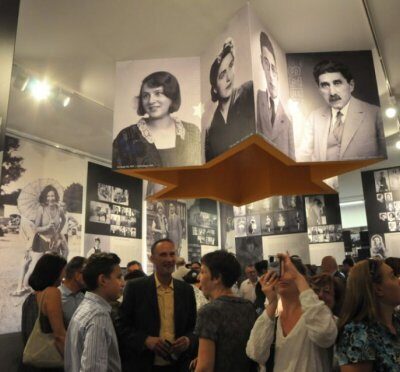 Hatalmas sárga Dávid-csillag néz le a mennyezetről, és vetíti fényét a padlóra. A parkettába a kiállítás címét gravírozták, a szemközti falon pedig Schönfeld Gréta életörömöt sugárzó lénye fogad. Körbenézve fekete-fehér tablók, csaknem ezer beszédes, korabeli műtermi és családi fotó, regénybe illő leírásokkal. Az egész nem mindennapi.