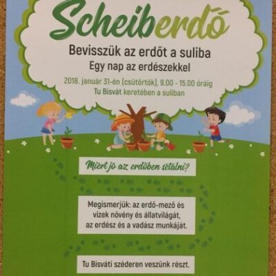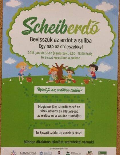 Ma reggelre beköltöztek az erdők a Scheiber Sándor Gimnázium és Általános Iskola aulájába: a gyerekeket érdekes természeti kincsekkel megrakott tárlók fogadták, amelyek között volt faaprítékkal megrakott és belenyúlkálásra biztató „kincses láda” Egy akvárium élő csigákkal és különböző vízi rovarokkal, „gyűjtögető” játék az ehető és mérgező növények megkülönböztetésére, valamint egy „dézsmáló” és „körforgó”, amely játékos formában tudósított egy erdei vadalmafa életének egy éves ciklusáról. A kezdeményezés a Mazsihisz berkeiben született, és Földművelésügyi Minisztérium (FM) támogatásával valósult meg.