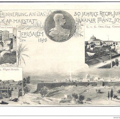 1869-ben több más uralkodókkal együtt az akkor 39 éves Ferenc József is részt vett a Szuezi csatorna megnyitásán. Előtte, ha már arra járt alapon, felkereste a Szentföldet is. 1869 november 8-án kötött ki hajója Jaffán. Egy éjszakát itt pihentek, majd innen indultak lóháton, kocsikkal Jeruzsálembe.
