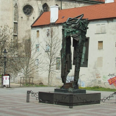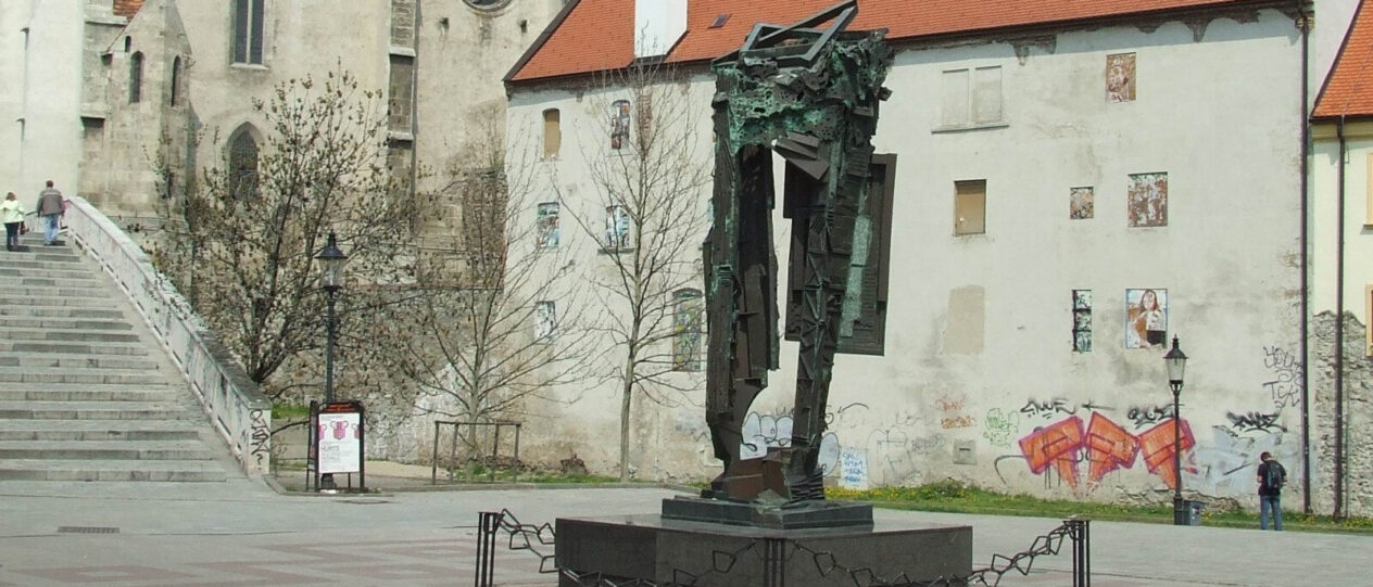 Ferenc pápa a pozsonyi holokauszt emlékműnél találkozik a zsidó hitközség tagjaival