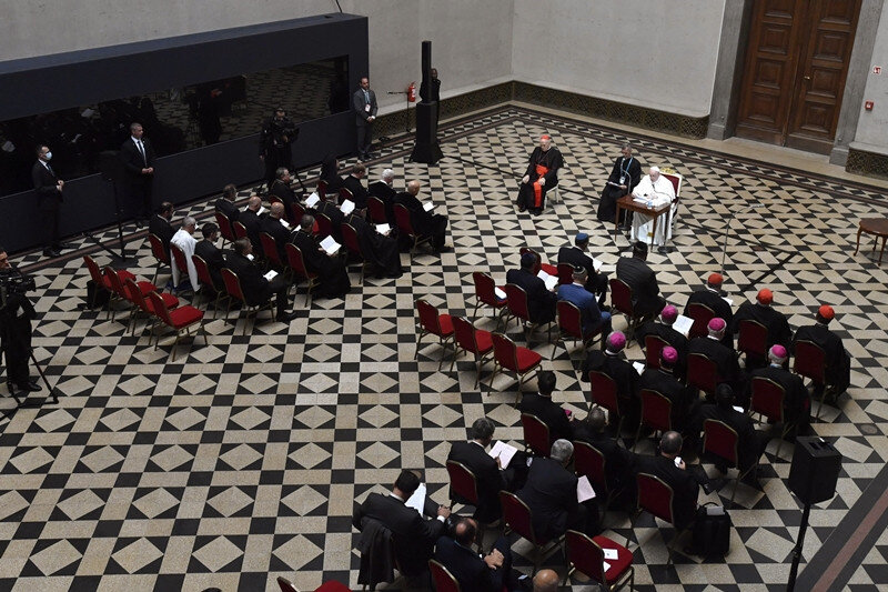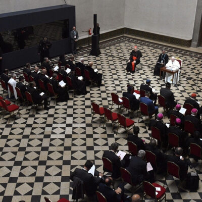 Ferenc pápa ülve fogadta az egyházak képviselőit és olasz nyelven olvasta föl köszöntő beszédét. A katolikus egyházfő a keresztény és a zsidó közösségek testvéri kapcsolatát a budapesti Lánchídhoz hasonlította, amely összeköti a főváros két partját, majd közös egységre hívott fel az antiszemitizmus ellen. Mint fogalmazott: a zsidók és a keresztények nem az idegent és az ellenfelet, hanem a barátot és a testvért akarják látni egymásban.