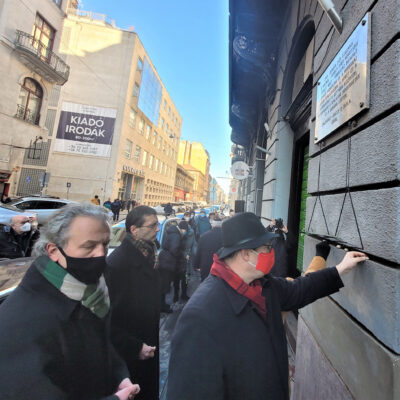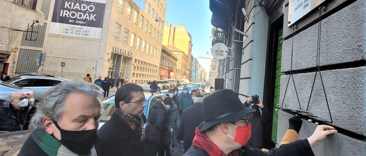 A beszédek után a résztvevők az emlékezés kavicsait és virágait helyezték el az épület homlokzatán, valamint a lépcsőházban található emléktáblák alatt.