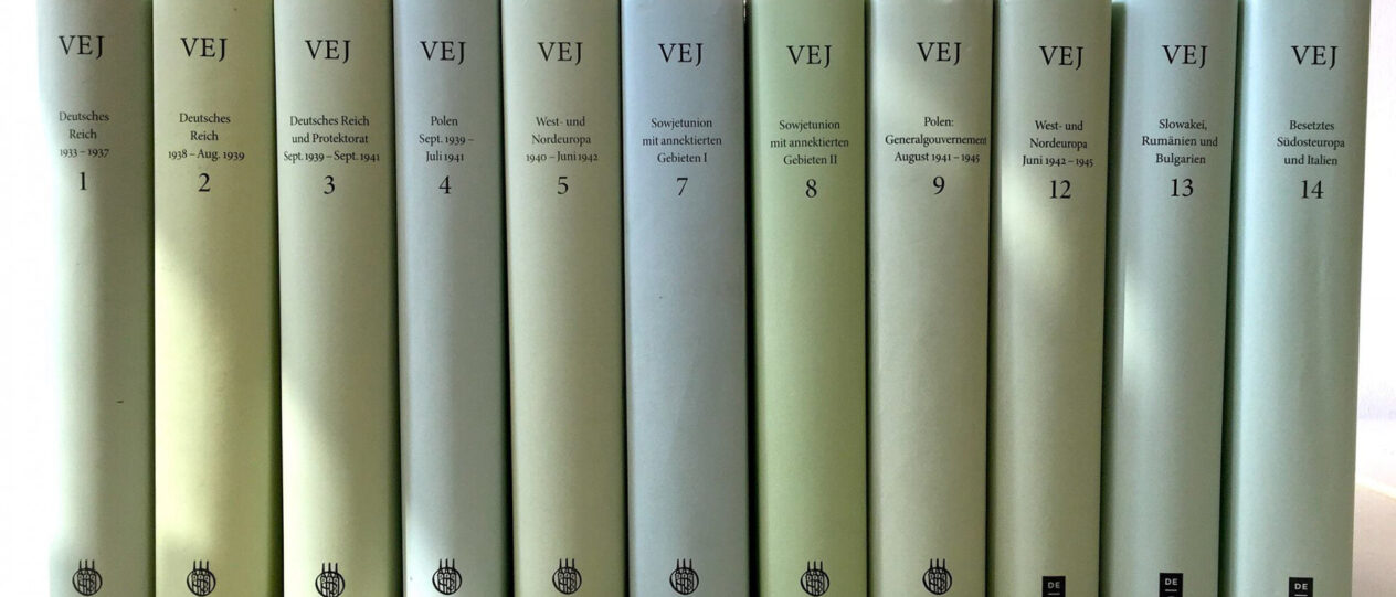 A berlini és müncheni székhelyű Kortárs Történeti Intézet (Institut für Zeitgeschichte) eddig tizennégy forráskiadványt adott ki „Az európai zsidóság üldözése és elpusztítása a náci Németországban 1933-1945 között” című sorozatában. A mértékadó sorozat címe németül: Die Verfolgung und Ermordung der europäischen Juden durch das nationalsozialistische Deutschland 1933–1945, amelyet a cím után VEJ-nek rövidítenek.