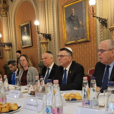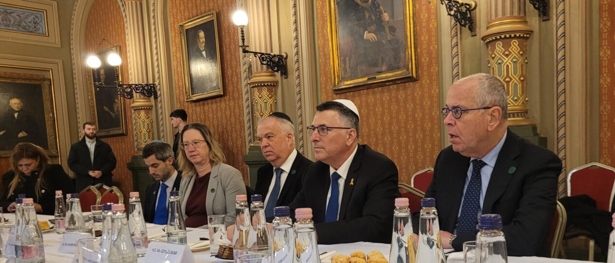 Minister Sa’ar concluded by thanking Mazsihisz for its support of Israel, Kibbutz Be’eri, and the families of hostages since October 7. Responding to Prof. Dr. Grósz’s closing remark that Mazsihisz would be pleased to welcome him back in quieter times for longer discussions and to visit Jewish communities outside Budapest, the Foreign Minister replied, „I wish we were there already.”