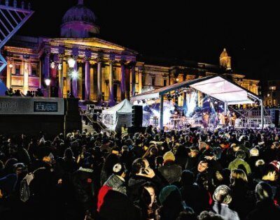 A Trafalgar-téren álló óriási Hanuka-gyertya lángjai lobbannak fel, egyik a másik után, jövő keddtől, az ünnep első napjától fogva, erre a napra több mint 5000 embert várnak vallási és közösségi vezetők.