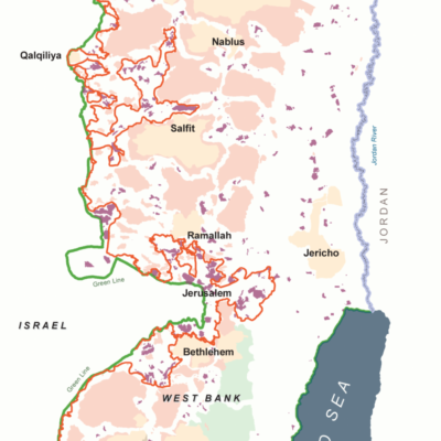Az 1967-ben Jordániától elfoglalt Ciszjordánia területén Kelet-Jeruzsálemen kívül jelenleg közel négyszázezer izraeli telepes él. Ezt a területet a nemzetközi jog alapján a nemzetközi közösség túlnyomó része megszállt területnek tekinti, ahová nem szabad civileket telepíteni. A palesztinok Ciszjordániában és a Gázai övezet területén tervezik leendő államuk létrehozását.
