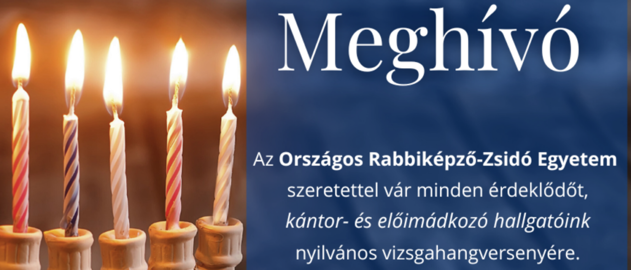 A 2023/24-es tanév őszi szemeszterének lezárásaként az előimádkozó és kántor szakirányú szak december 11-én, hétfőn 17.30 órakor tartja az Országos Rabbiképző – Zsidó Egyetem zsinagógájában a vizsgakoncertjét, amelyre sok szeretettel várják az érdeklődőket.
