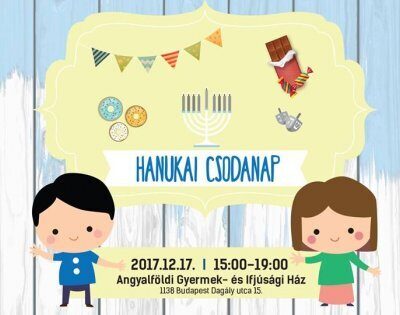 A Magyarországi Zsidó Hitközségek Szövetsége és a Bálint Ház nagy szeretettel és ünnepi hangulatban vár minden érdeklődőt a „Csodás” hanukai bulira, 2017. december 17-én, vasárnap délután 3 órától az Angyalföldi Gyermek és Ifjúsági Házba (Budapest XIII. ker., Dagály utca 15.). A zenét és a hangulatot az Eszter-lánc mesezenekar biztosítja, gyertyagyújtás Verő Tamás főrabbival.